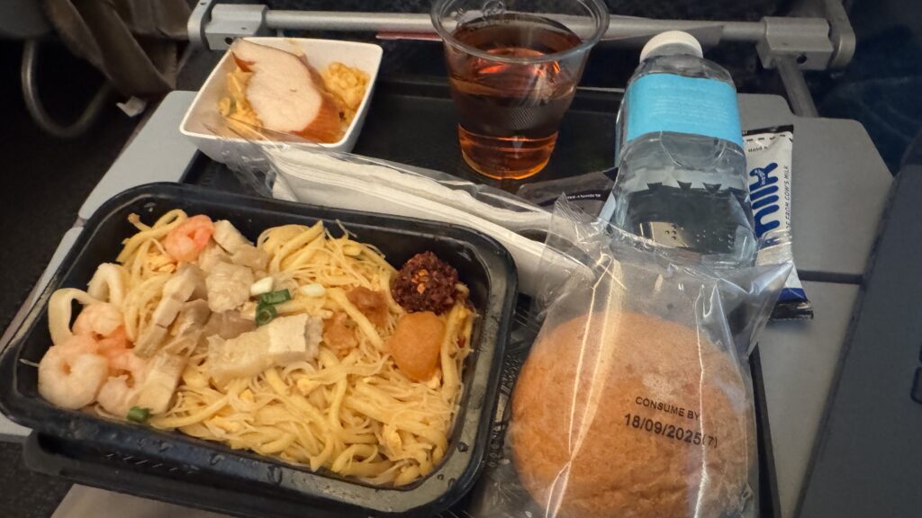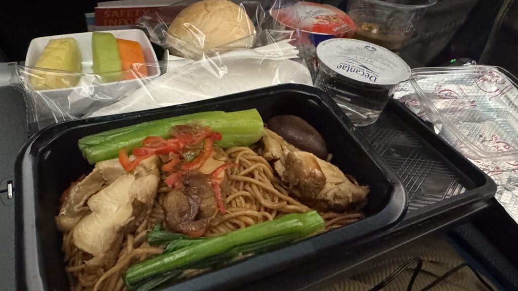 エコノミークラスの機内食は、ホッケンミーをチョイス。