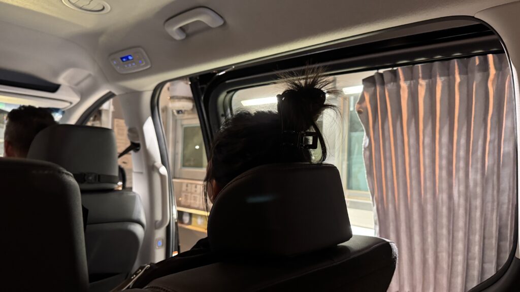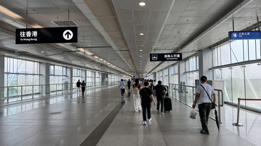 乗り込むと予想以上にギュウギュウで、少し後悔しましたが、香港側のイミグレーションを車内で済ませられたのは便利でした。