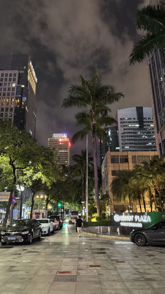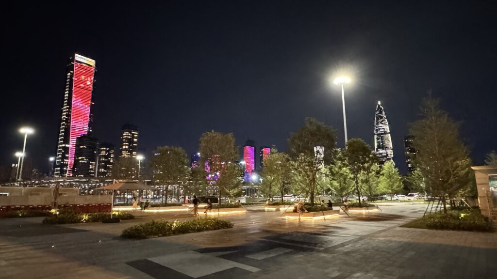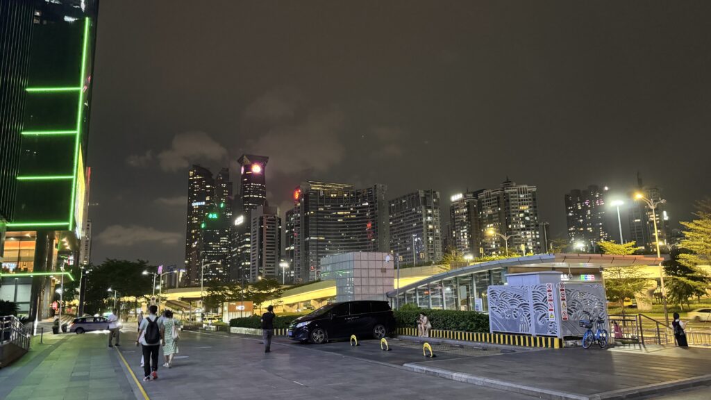 一日の終わりにふと歩いてみると、昼間とは違う表情を見せる深圳の夜景がとても印象的でした。