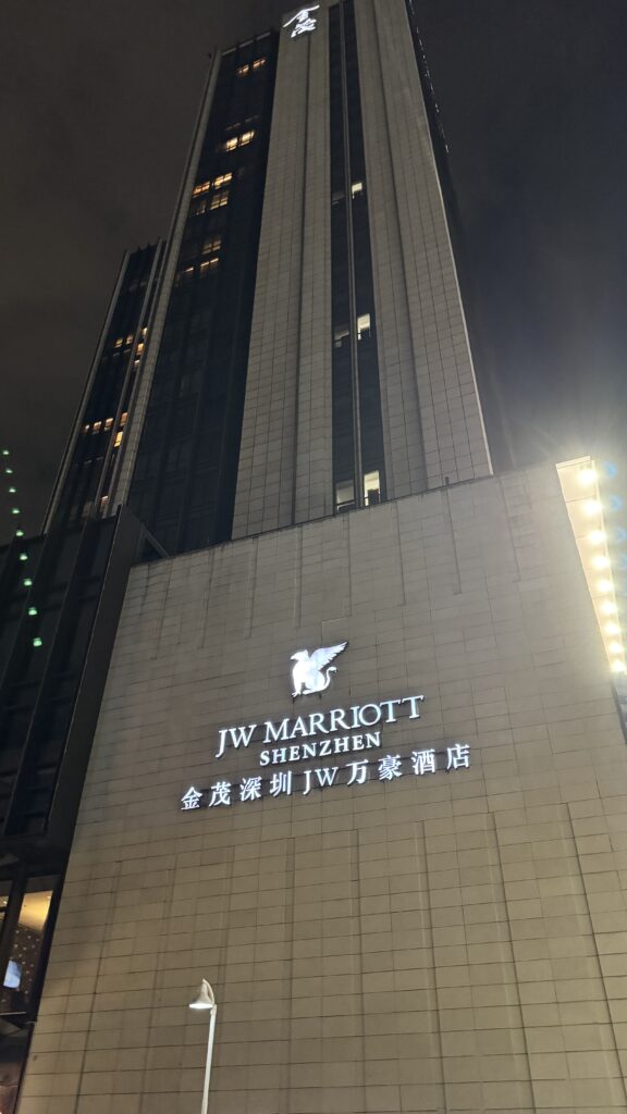 今日から2泊滞在する JW Marriott Shenzhen に、タクシーで直接到着しました。