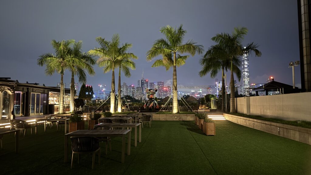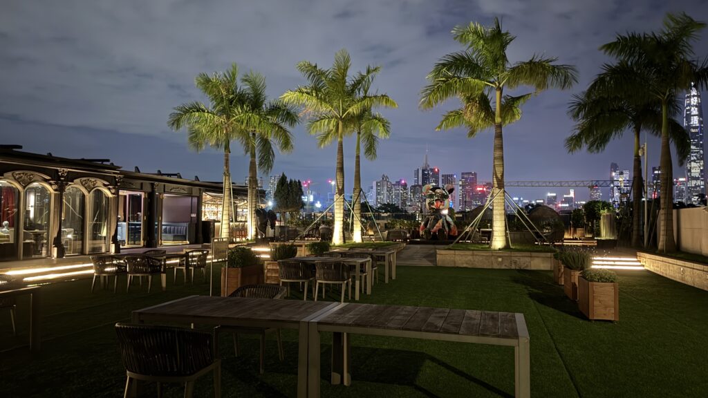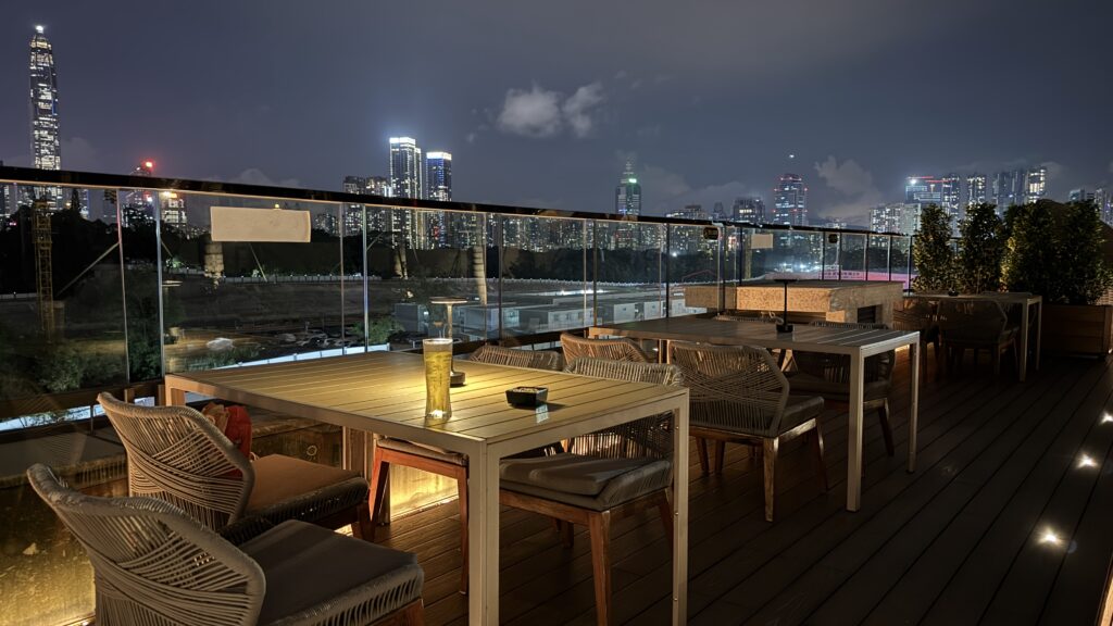 静かなテラス席に腰を下ろし、目の前に広がる深圳の高層ビル群を眺めながら、心地よい夜風にあたりながら、一人ゆっくりとグラスを傾けます。