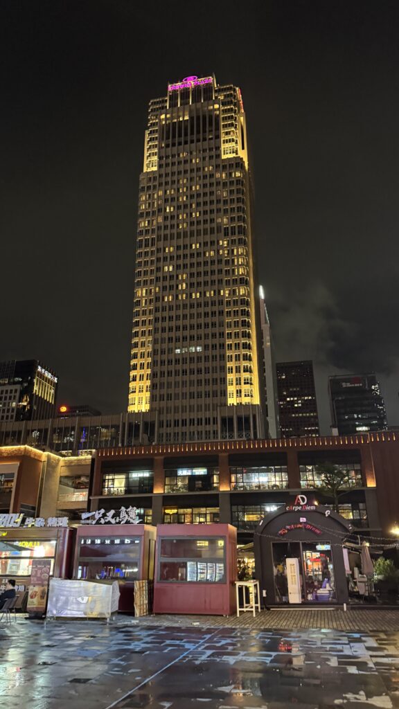 食事の後少し、大都会深圳の街を散策しました。高層ビルが立ち並び、ネオンが街を彩っています。