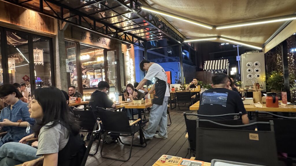 ホテルを出て、ふと目に留まった賑やかな焼串のお店に入ってみました。