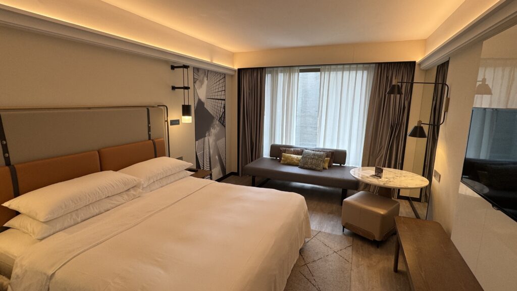 シェラトン香港の部屋は、中国の広々としたホテルに滞在することが多いせいか、少しコンパクトに感じました。