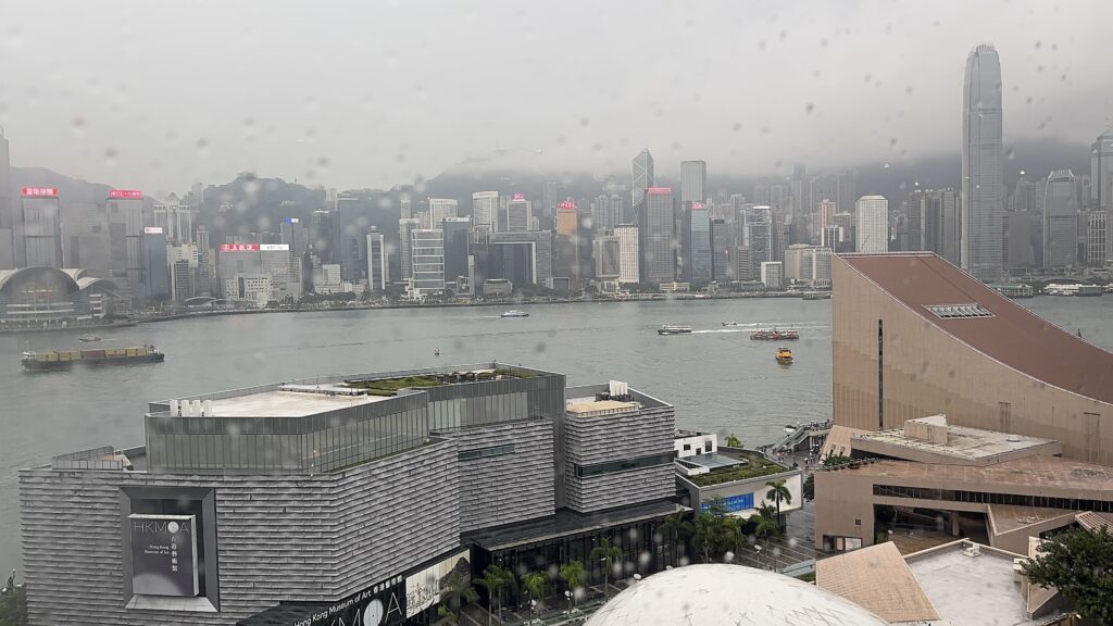 それでも、霧に包まれたヴィクトリア・ハーバー越しに見える高層ビル群はどこか幻想的で、